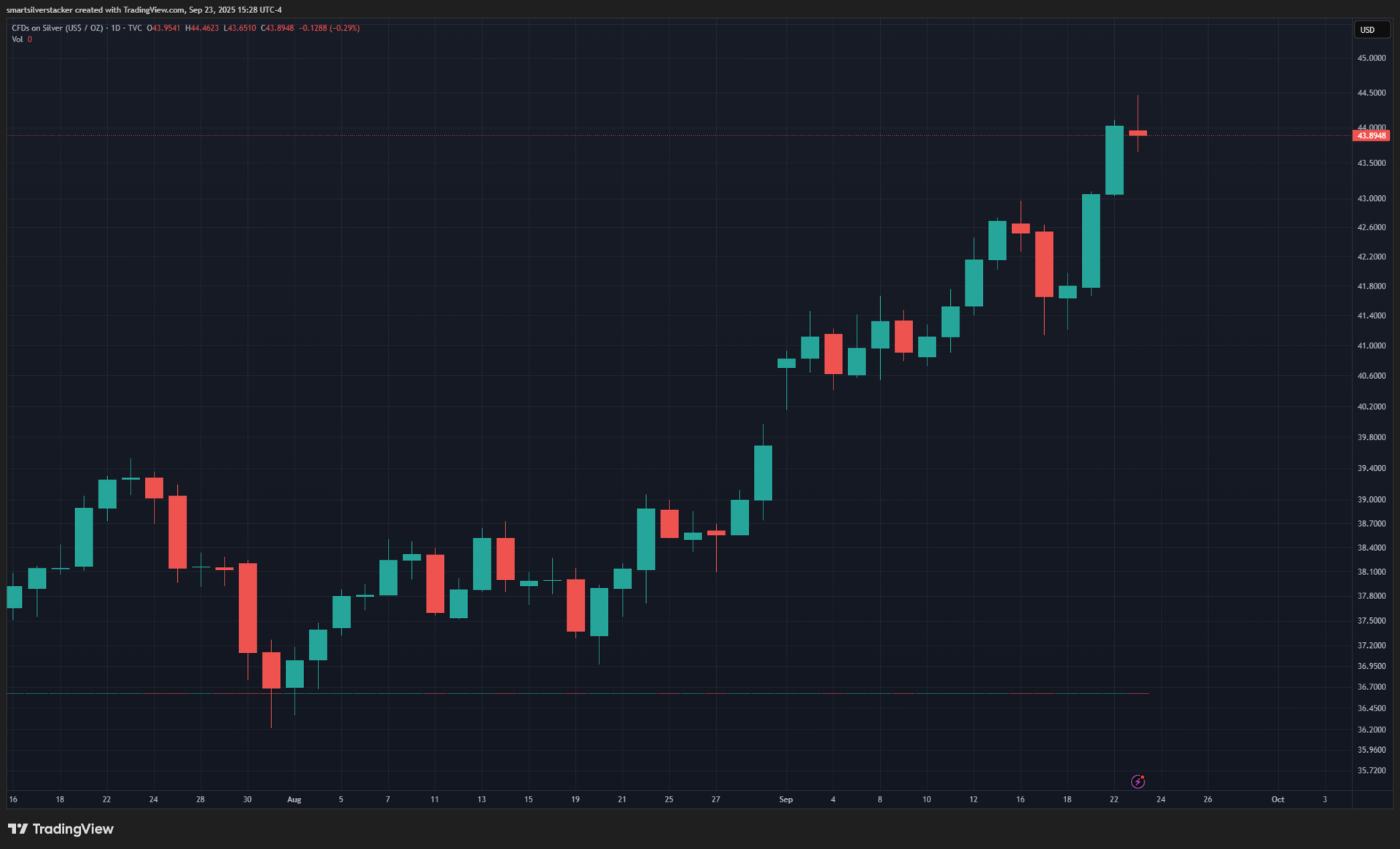 Silver itself recently broke through the $44 level, briefly hitting around $44.46 before easing back slightly. In the very short term, this run looks a bit extended, and a pullback here would be natural after such a steep move.